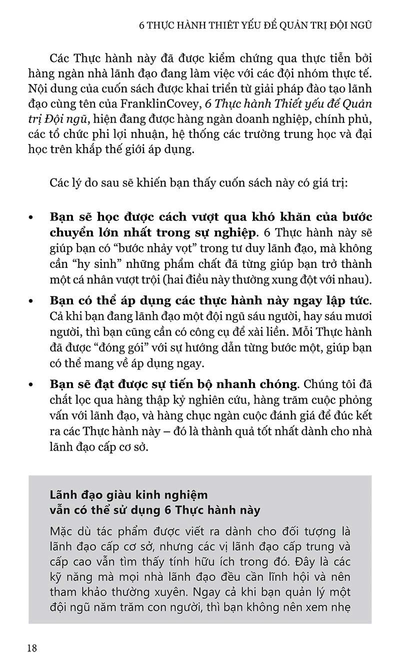 Quyển sách “6 Thực hành Thiết yếu để Quản trị Đội ngũ” là một tác phẩm quản trị có tính thực hành rất cao. Đây đúng hơn là một quyển cẩm nang giúp bạn đạt được bước chuyển đầy thách thức nhưng cũng rất vinh quang để trở thành nhà quản lý.
