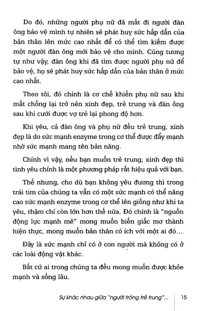 Giữa thân thể và tinh thần của con người có một mối quan hệ khăng khít bền chặt không thể tách rời. Nếu bạn chỉ làm những việc tốt cho cơ thể hay chỉ làm những việc tốt cho tinh thần thì bạn không thể có được sự trẻ trung thực sự. Con người chỉ có được sự trẻ trung thực sự khi đồng thời thực hiện cả hai việc là trẻ hóa cơ thể và trẻ hóa tâm hồn.