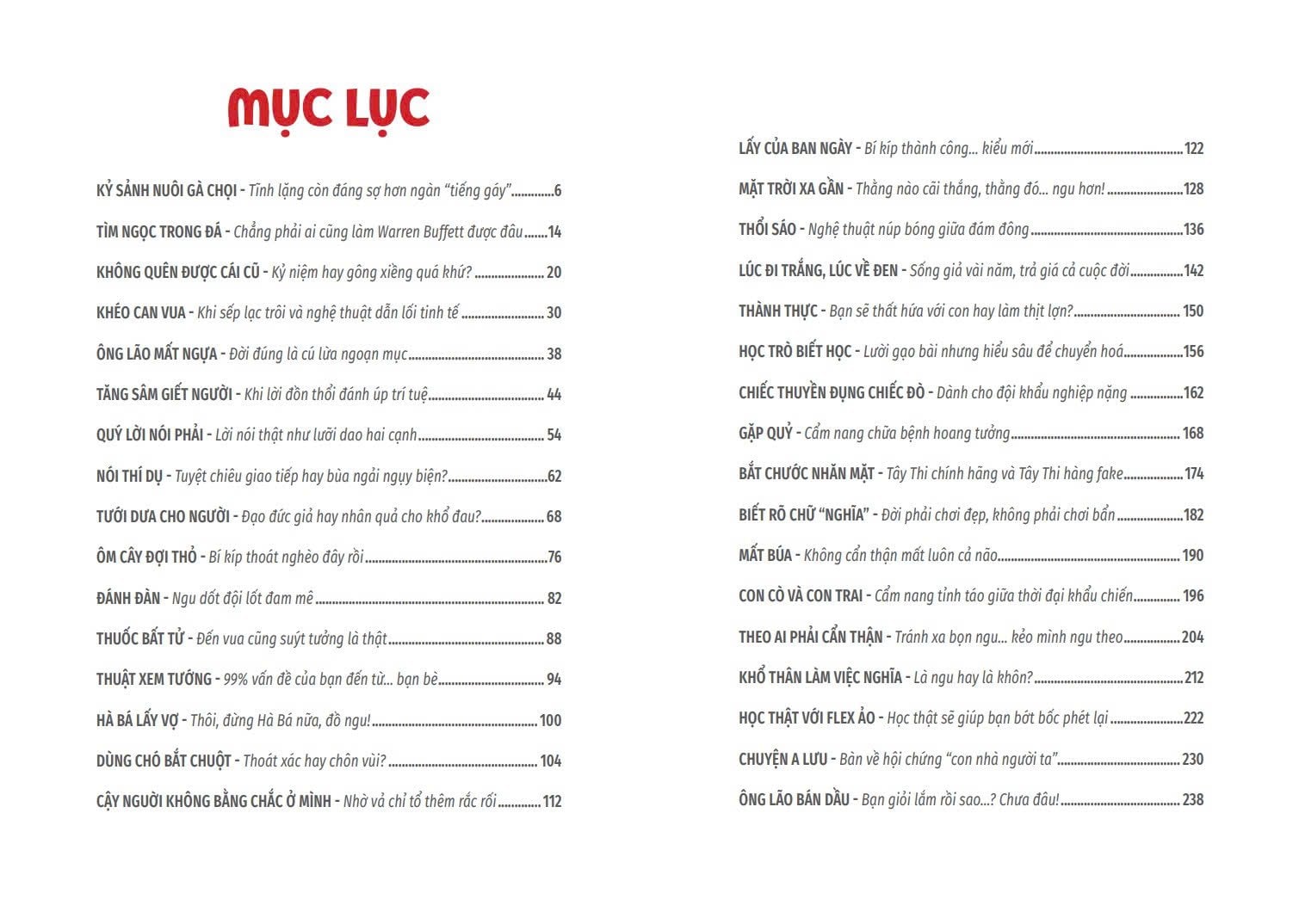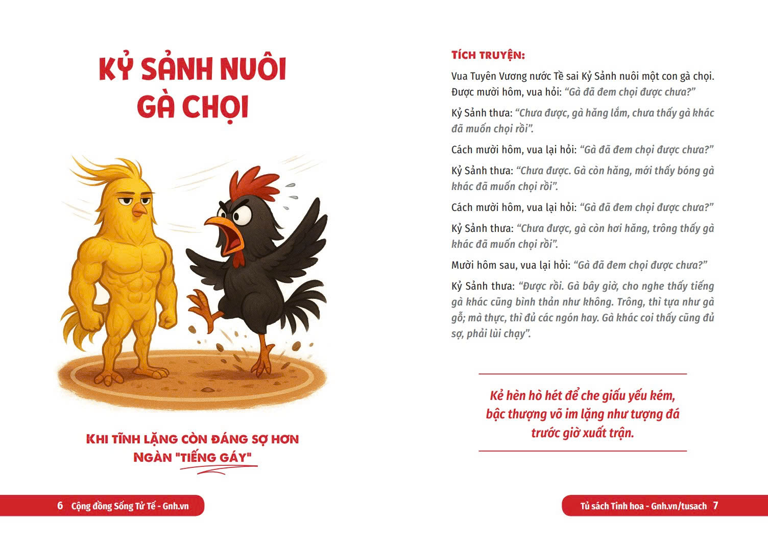 Ở đây, mỗi câu chuyện cổ là một tấm gương phản chiếu xã hội hiện đại – nơi gà trống, gà mái, sếp khó ở hay dân mạng quá khích đều tìm thấy mình ở đâu đó. Cuốn sách không hô khẩu hiệu “sống đẹp”, mà chỉ nhẹ nhàng… vả vào cái tôi bằng những cú tát tỉnh thức.