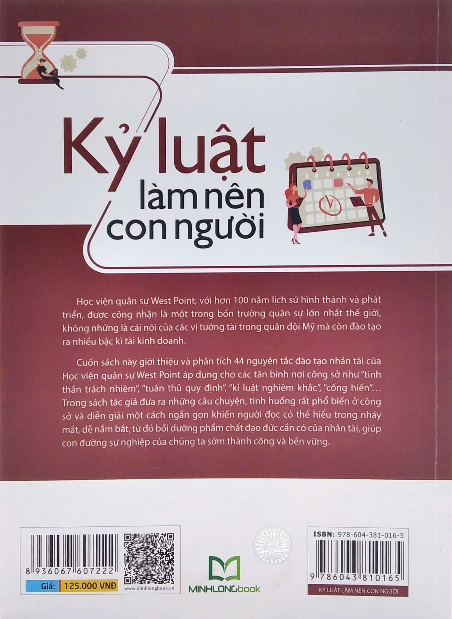Cuốn sách Kỷ Luật Làm Nên Con Người sẽ hệ thống lại những quy tắc, biện pháp mà Học viện quân sự West Point đã áp dụng để đào tạo và bồi dưỡng nên những nhân tài kiệt xuất. Phía sau mỗi quy tắc lại là một câu chuyện về thành côn. Nếu bạn muốn trong cuộc đời hữ hạn của mình có thể tạo nên những thành tựu rực rỡ, thậm chí đực ghi tên mình vào lịch sử, bnạ nhất định phải biết và hiểu những quy tắc này. Chúng sẽ là những lò xò trợ lực cho bạn trên con đường đến với thành công, giúp bạn vượt qua mọi nghịch cảnh để giành lấy chiến thắng cuối cùng.