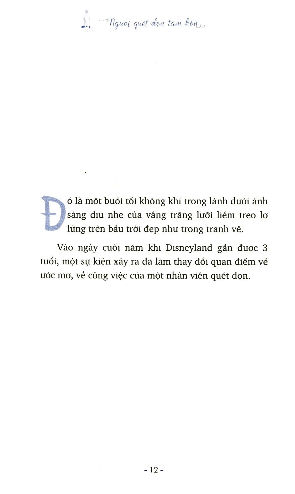 Người quét dọn tâm hồn là cuốn sách kể về những câu chuyện có thật đã từng xảy ra tại vương quốc của những giấc mơ Disneyland Nhật Bản do tác giả Hiroshi Kamata ghi chép lại .Từng trang sách như từng cánh cửa đưa bạn đến với một thế giới cổ tích, nơi bạn được phù phép bởi một phép màu tràn đầy ý nghĩa. Cuốn sách này gửi đến cho các bạn độc giả những thông điệp ấn tượng sâu sắc về giá trị công việc.