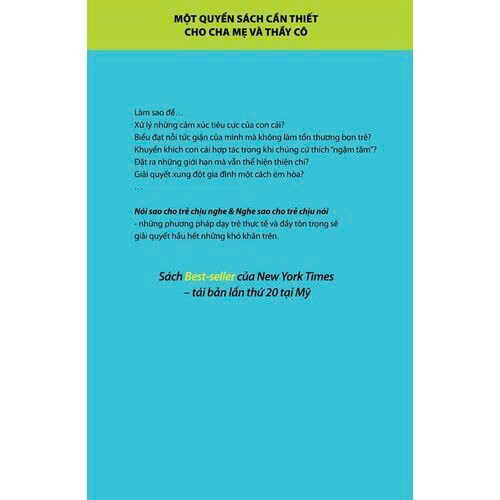 Nói Sao Cho Trẻ Chịu Nghe, Nghe Sao Cho Trẻ Chịu Nói cung cấp cho các bậc phụ huynh nhiều điều bổ ích về tâm lý của trẻ để có thể hiểu hơn, thông cảm hơn, kiên nhẫn hơn và kiềm chế hơn để thoát khỏi các cơn nóng giận của mình, tránh gây tổn thương cho các bé. Nói làm sao cho thuyết phục, cho hợp lý để đạt được sự đồng thuận của con cái, để tìm được tiếng nói chung trong gia đình.
