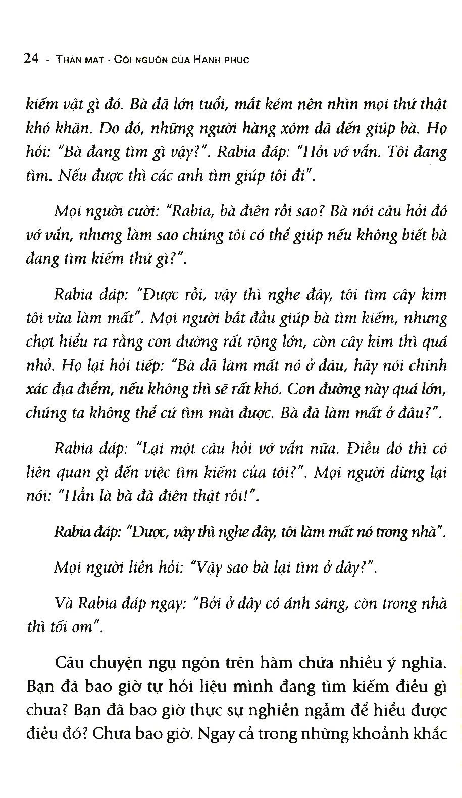 Nếu sống đơn giản, cởi mở, gần gũi, yêu thương mọi người, bạn sẽ tạo ra thiên đường cho chính mình. Nếu bạn sống khép kín, luôn trong tư thế phòng thủ, luôn lo lắng rằng ai đó có thể biết được suy nghĩ của bạn, giấc mơ của bạn, những sai lầm của bạn, thì cuộc sống đó chẳng khác nào địa ngục. Địa ngục ở ngay trong bạn – và thiên đường cũng vậy. Đó không phải là vị trí địa lý mà là không gian tinh thần của bạn.
