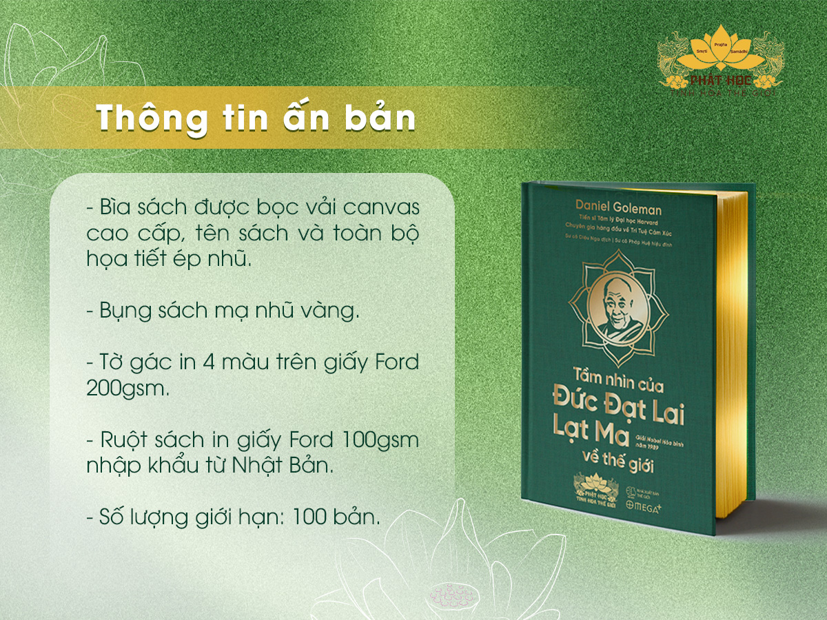 Tôi rất hạnh phúc khi biết rằng người bạn cũ của tôi, Daniel Goleman đã viết cuốn sách này, khám phá và mô tả cách mà những cam kết cơ bản đó đã được hiện thực hóa trong vài thập niên qua. Là một tác giả có kinh nghiệm và là người chủ động quan tâm đến khoa học trong thế giới nội tâm và thế giới bên ngoài, Daniel đã hỗ trợ tôi rất nhiều và đủ khả năng thể hiện những điều này một cách rõ ràng như anh ấy đã thể hiện trong cuốn sách này.