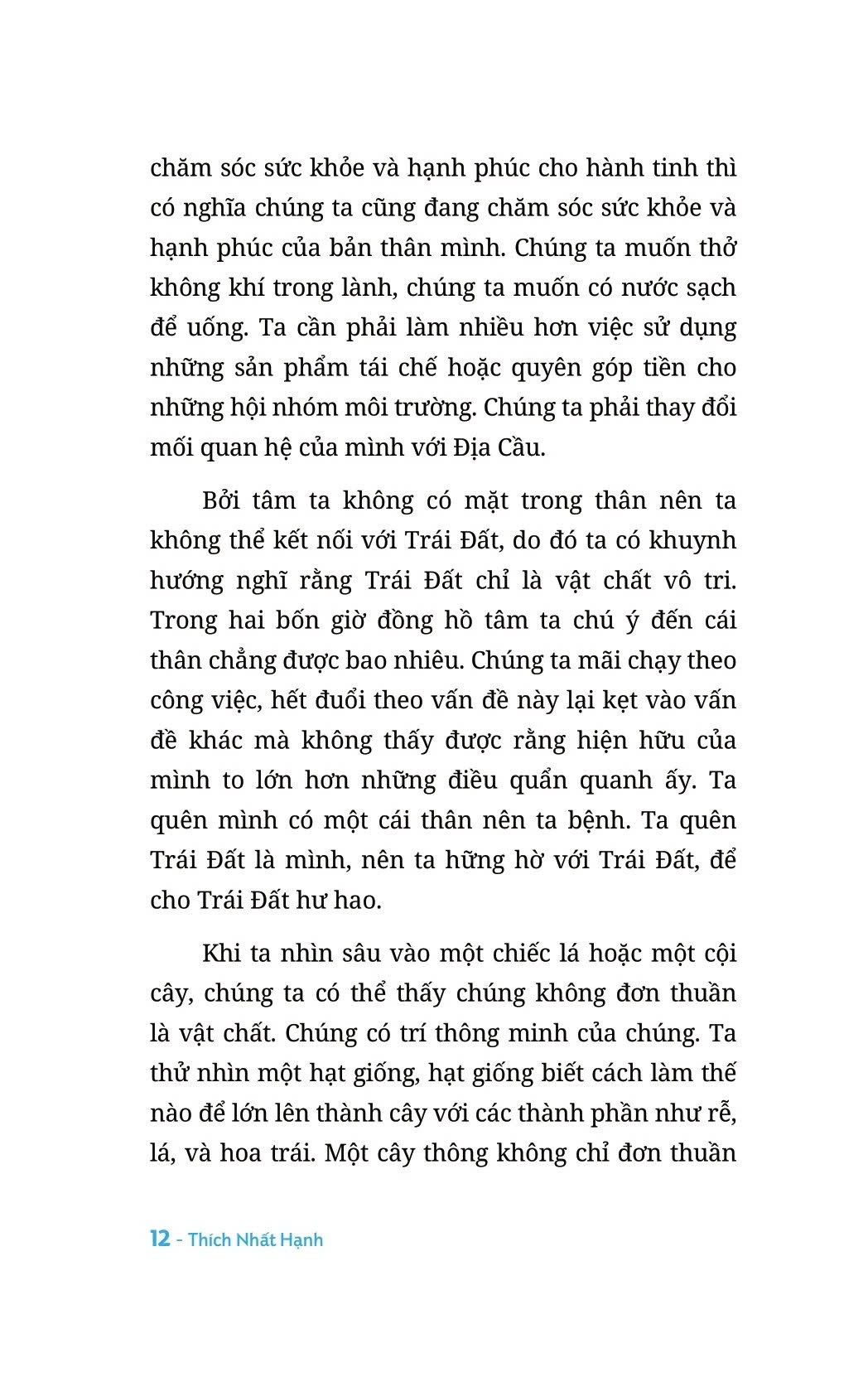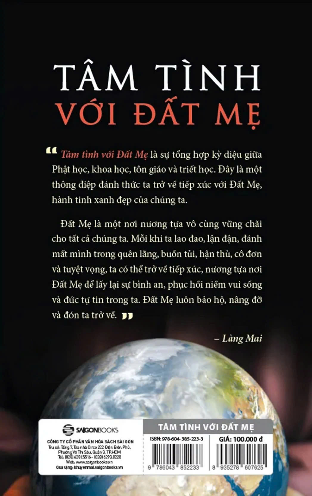 Tâm tình với Đất Mẹ là sự tổng hợp kỳ diệu giữa Phật học, khoa học, tôn giáo và triết học. Đây là một thông điệp đánh thức ta trở về tiếp xúc với Đất Mẹ, hành tinh xanh đẹp của chúng ta. Đất Mẹ là một nơi nương tựa vô cùng vững chãi cho tất cả chúng ta. Mỗi khi ta lao đao, lận đận, đánh mất mình trong quên lãng, buồn tủi, hận thù, cô đơn và tuyệt vọng, ta có thể trở về tiếp xúc, nương tựa nơi Đất Mẹ để lấy lại sự bình an, phục hồi niềm vui sống và đức tự tin trong ta. Đất Mẹ luôn bảo hộ, nâng đỡ và đón ta trở về.