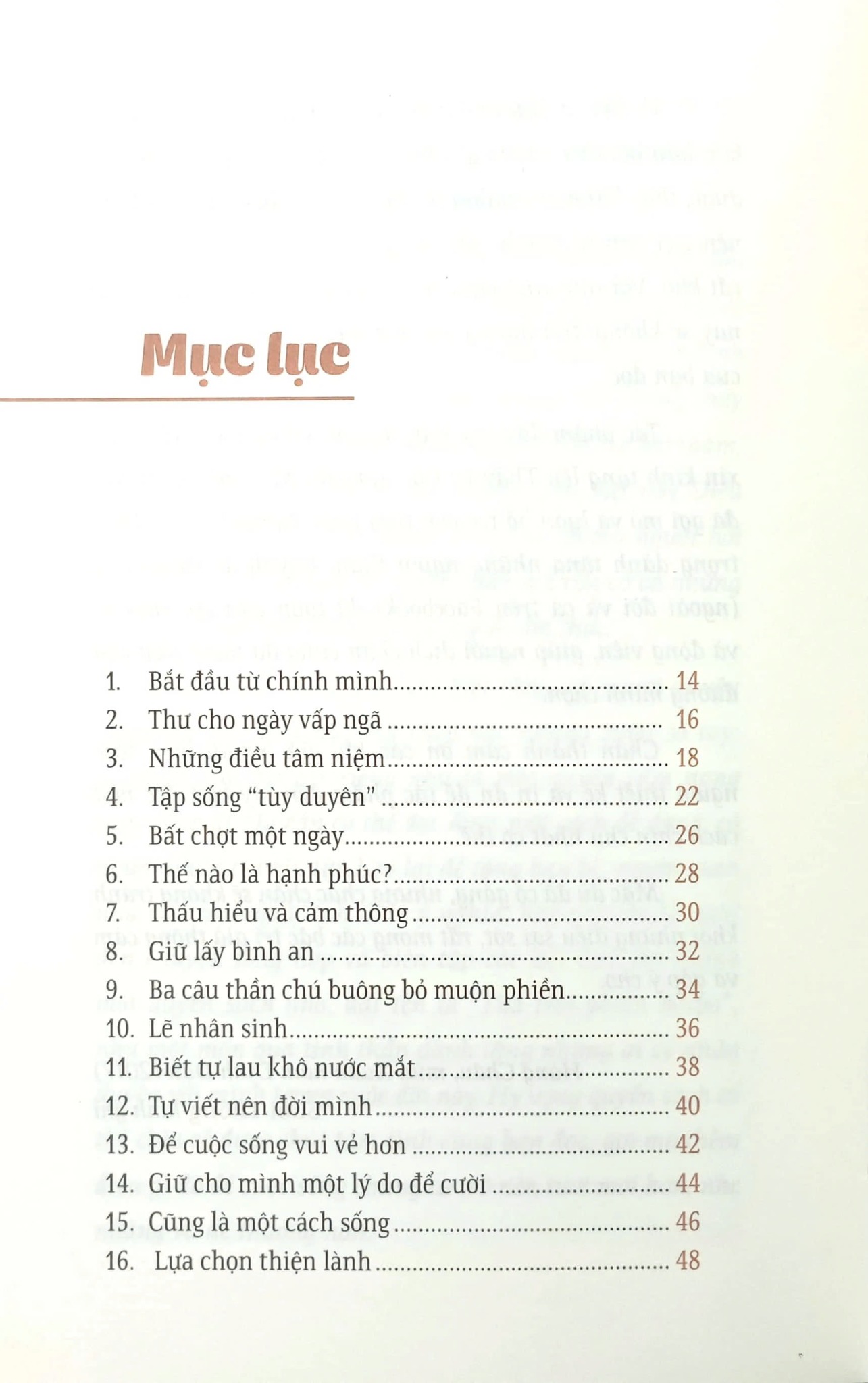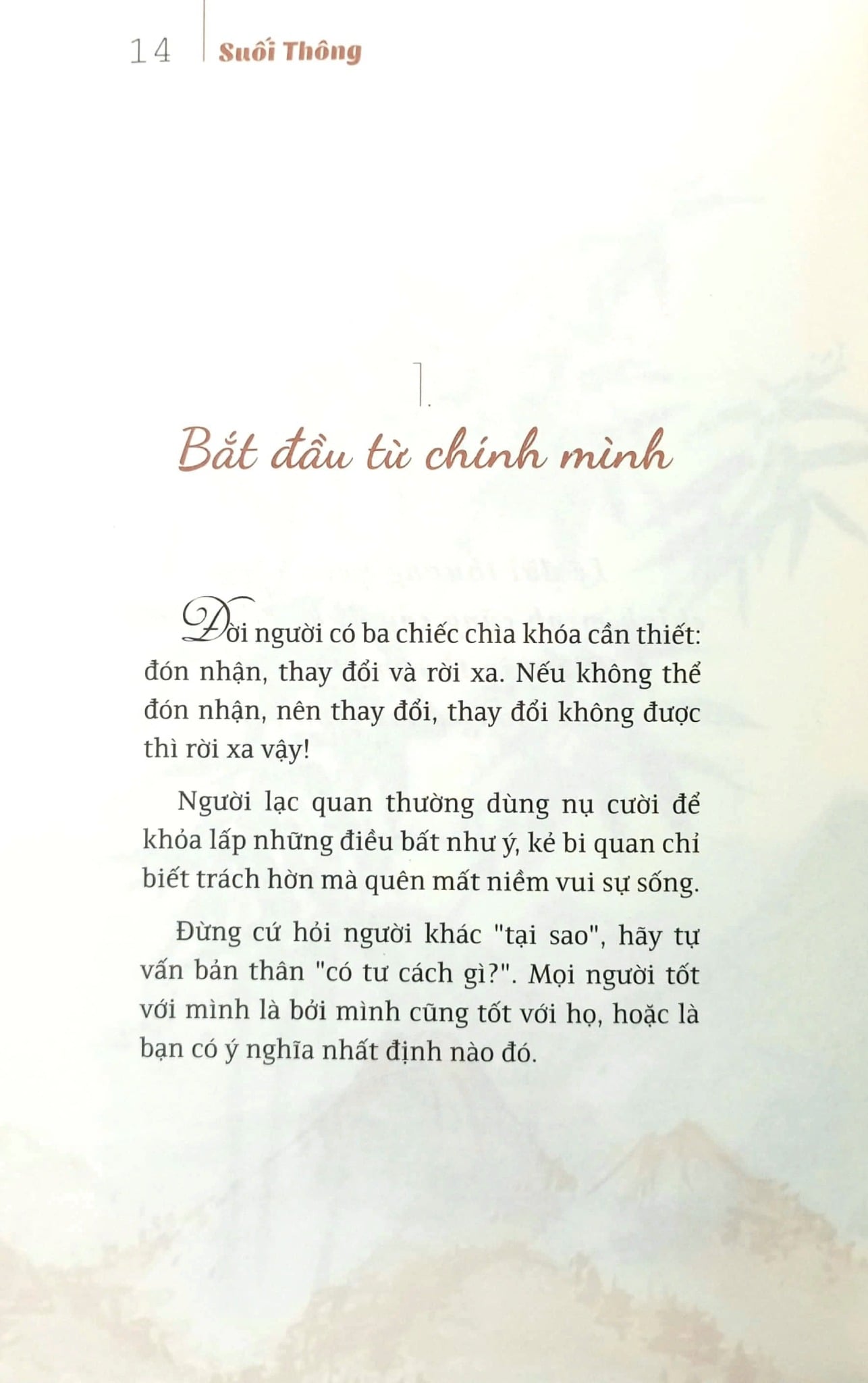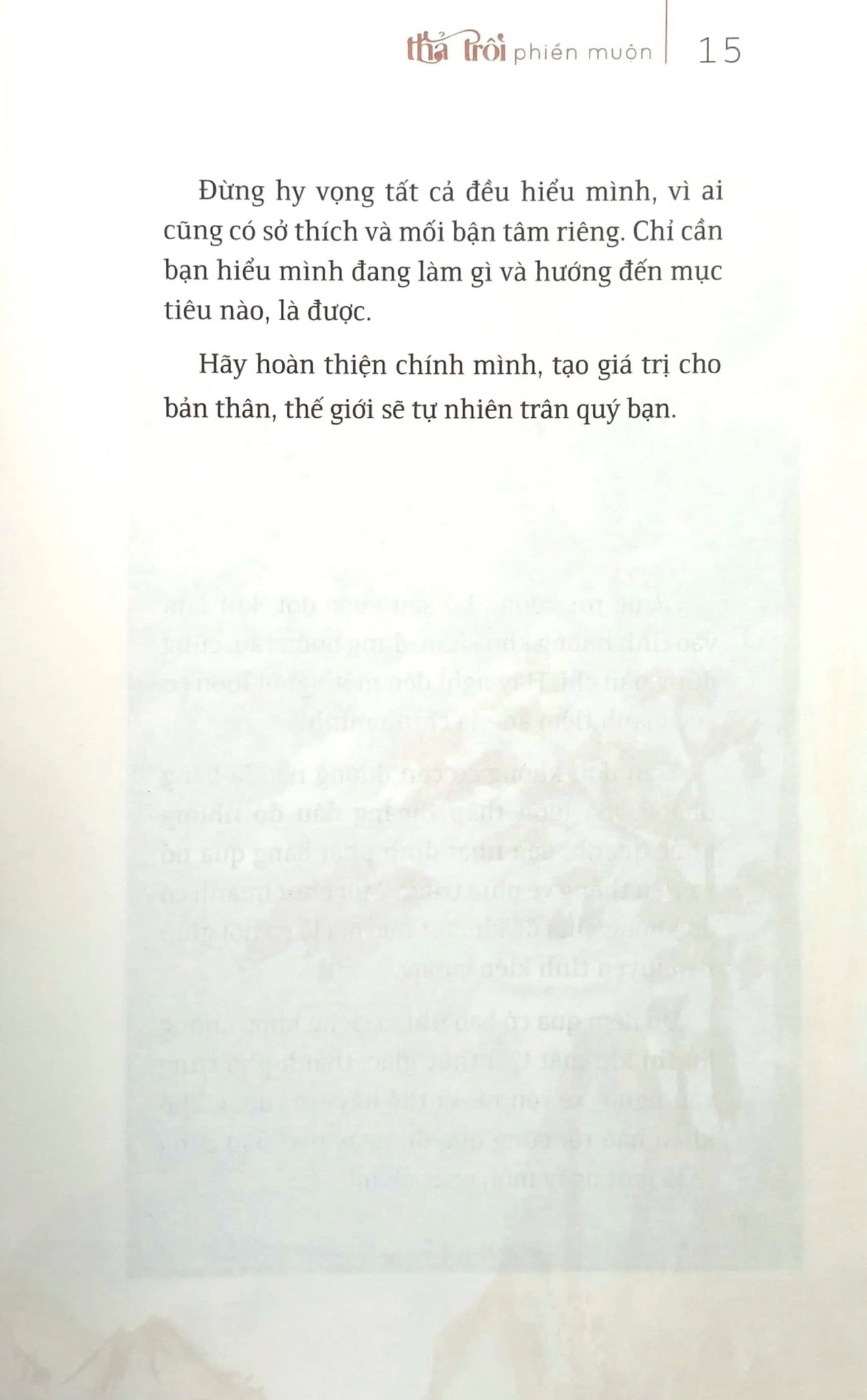 Vì thế hãy mở lòng mình ra, tập nếp sống thứ tha, bước qua những người và những việc khiến bản thân phiền muộn, bạn sẽ thấy mình đang đứng ở trên cao và nhìn ra xa tận cuối chân trời.
