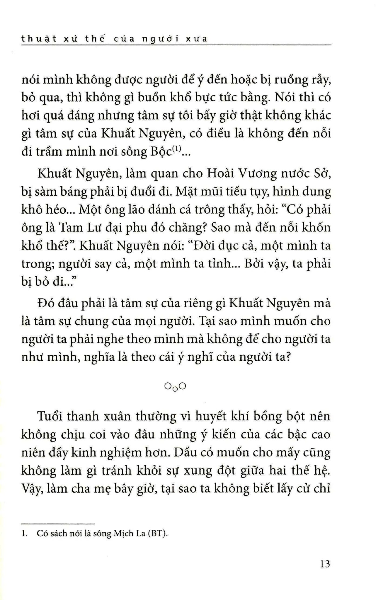 “Thuật xử thế của người xưa” được viết năm 1954, bao gồm những điển tích khắp đông tây kim cổ về đạo xử thế đầy thâm thúy và sâu sắc của những bậc thánh nhân thời xưa. “Thuật xử thế của người xưa” là những lời khuyên một cách ý nhị của tác giả về thuật giao tiếp giữa người với người, với bậc bề trên, cũng như với nội tâm của chính mình, hướng đến tinh thần chân, thiện, mỹ.