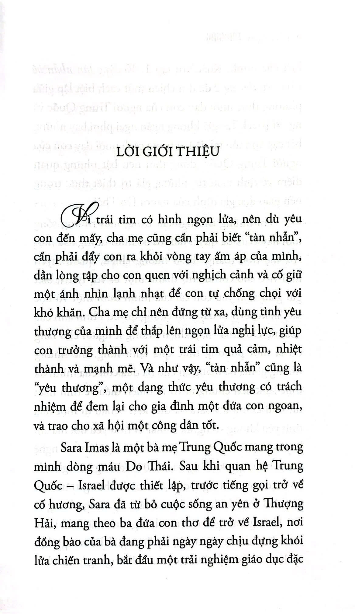 Sara Imas là một bà mẹ Trung Quốc mang trong mình dòng máu Do Thái. Sau khi quan hệ Trung Quốc - Israel được thiết lập, trước tiếng gọi trở về của cố hương, Sara đã từ bỏ cuộc sống an yên ở Thượng Hải, mang theo ba đứa con thơ để trở về Israel, nơi đồng bào của bà đang phải ngày ngày chịu đựng khói lửa chiến tranh, bắt đầu một trải nghiệm giáo dục đặc biệt của mình. Khác với tập 1, "Vô cùng tàn nhẫn, vô cùng yêu thương 2" đã đối chiếu một cách biệt lập giữa phương thức nuôi dạy con của người Trung Quốc và người Israel. Tác giả không ngần ngại phơi bày những bất cập vốn tồn tại đã lâu trong cách nuôi dạy con của người Trung Quốc, đồng thời nêu bật những quan điểm về tình mẫu tử, những giá trị thiết thực trong nền giáo dục Do Thái.